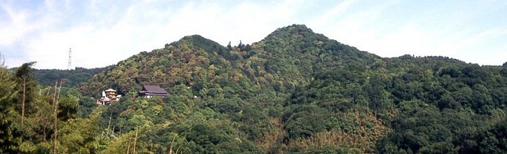 松永弾正久秀の居城・大和信貴山城跡。高い方のピーク・雄嶽頂上に主郭があった(奈良県平群町)